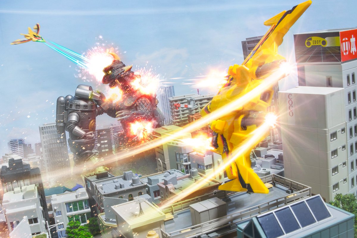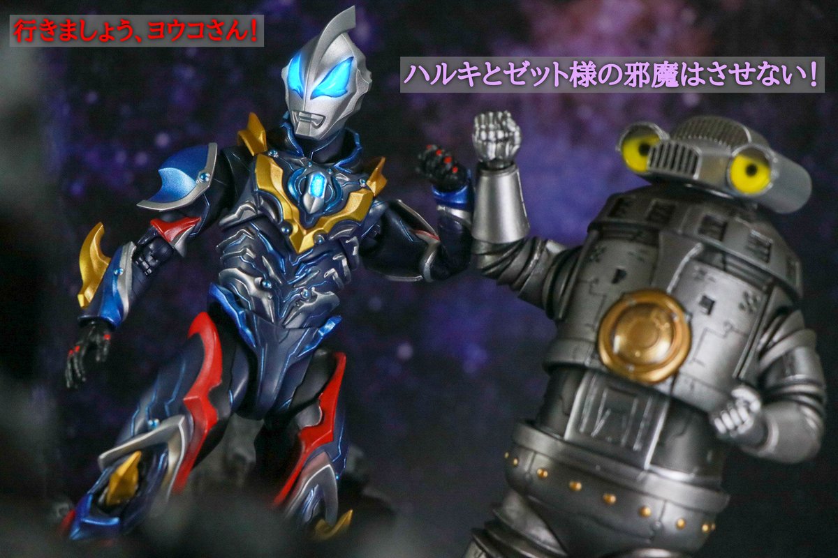#夜のフィギュア撮影会 テーマ「フリー」 こちら対怪獣特殊空挺機甲隊ストレイジ所属セブンガー並びにウインダム、これより 特殊怪獣対応分遣隊スカード所属アースガロンを援護する! #セブンガー #ウインダム #アースガロン #ウルトラマンZ #ウルトラマンブレーザー