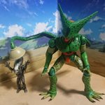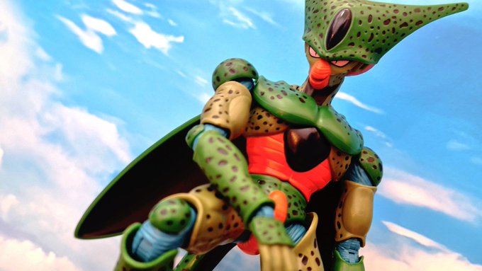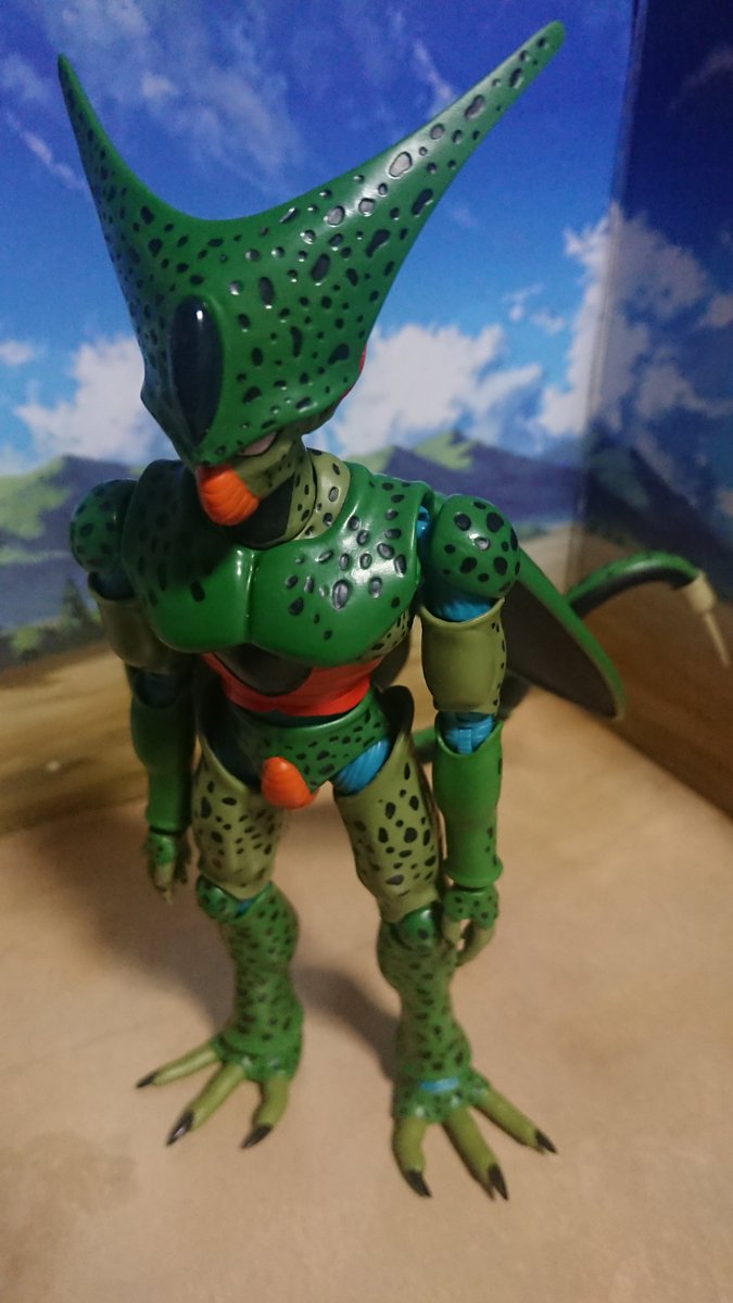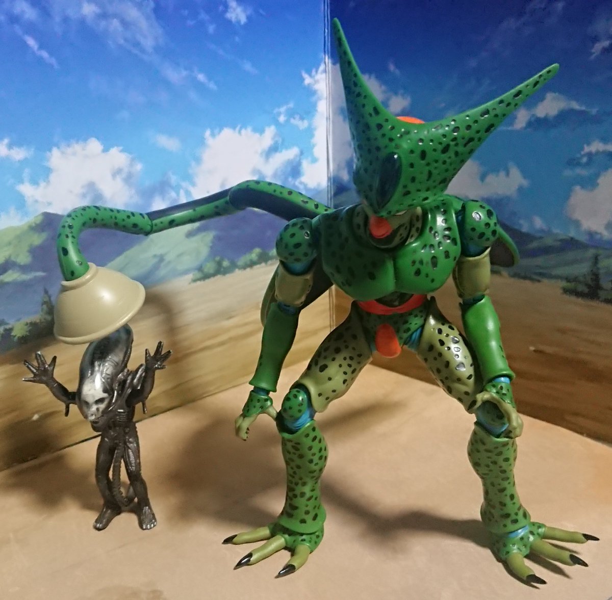 アーツのセル第一形態買ってしまいました😁🎶 やっぱ第一形態がカッコいい✨ 目を見開いたときに干渉するので別バージョンの頭が付いてるこだわりよう😅 交換途中はアフロっぽい☺️ #フィギュアーツ写真部 #セル