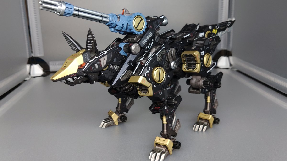 ケーニッヒウルフ完成しました ミリタリーチックな塗装にしても絶対似合うと思い戦車のイメージで緑にしてみました ちょこっと合わせ目の処理をしたくらいでほぼキットストレート組みでこの完成度なので是非手に取ってまてほしいキットです リプに追加画像あり #ゾイド #やすしのガンプラ以外