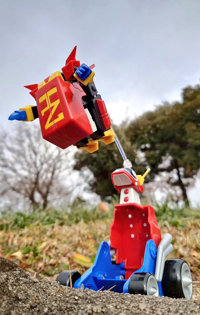 #夜のフィギュア撮影会 7/18 お題「変化」 塩ビ人形の「オタスケサンデー号」です。 戦車形態への変形の際、タイヤからキャタピラへの換装も出来る玩具はこれしか発売されませんでした。 #オタスケマン #タイムボカン