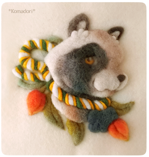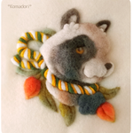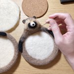 羊毛フェルト、タヌキのポケットブローチ誕生。 ポケットから頭と前足を出してつけるブローチです。ポケットに入れなくてもつけられます。 いきもにあ2022に出します。 #いきもにあ2022 #タヌキ