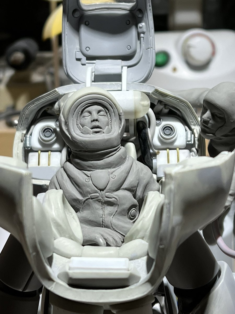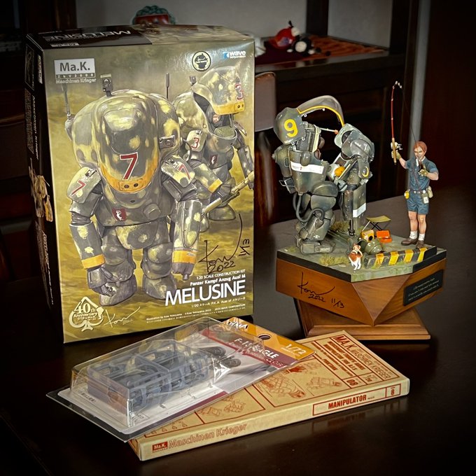 #今月作ったプラモ晒そうぜ ほとんど10月に出来上がってましたが、今月の #タマミー11th でお披露目しました。宇宙用に水着のお姉さんが乗っているのは広報の撮影という設定です。ブリックワークスの殻割りキットを使用しました。1/20のマシーネンを作るのは久しぶりだ。 #maschinenkrieger #sf3d