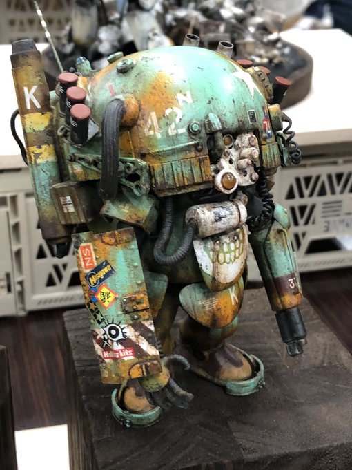 Part2 数年前に作ったジオラマのレストアです。重曹の雪表現が劣化で黄ばんでしまっていたため、台座ごと変更しました。 会場ではグローサーフントが持っているぬいぐるみにも注目してもらえて嬉しかったです。 #冬がテーマの作品を見せてください #マシーネンクリーガー #タマミー11th #タマミー
