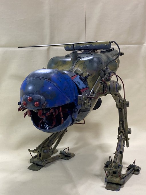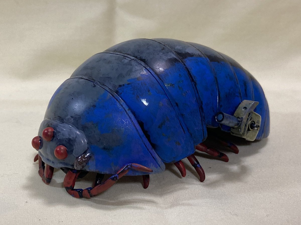 ローリーポーリー。キャメルに合体しパイロットの代わりに操縦する球形の無人機たが異常を起こし逃走、機械生命体プルートの配下となってしまった。コクピットをガチャダンゴ虫に置き換えて作りました。 #模型 #プラモデル #マシーネンクリーガー #maschinenkrieger #ガシャポン #ダンゴムシ #mak