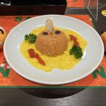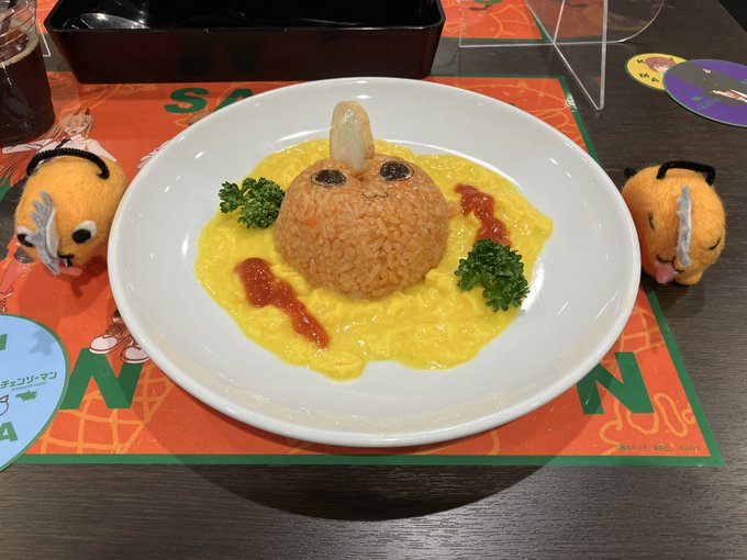 チェンソーマンカフェに行ってきました!! コラボメニューのポチタのオムライスと自作のポチタで写真を撮りました! #チェンソーマン #チェンソーマン好きな人と繋がりたい #ハンドメイド #羊毛フェルト #ポチタ #チェンソーマン2部