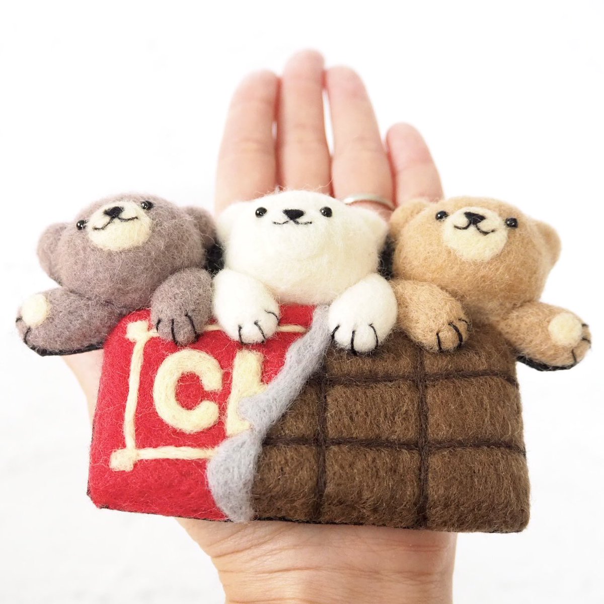 ちびタンたちにいただいたバレンタインチョコは、大人の紅茶味♪ #リントンズの英国紅茶トリュフ とってもおいしいの💝 今夜はこれでお酒タイムしよ~か~🍷 #羊毛タンタン№38+86 #羊毛フェルト #ジャイアントパンダ #チョコレート Thank you so much Luri-chan♪