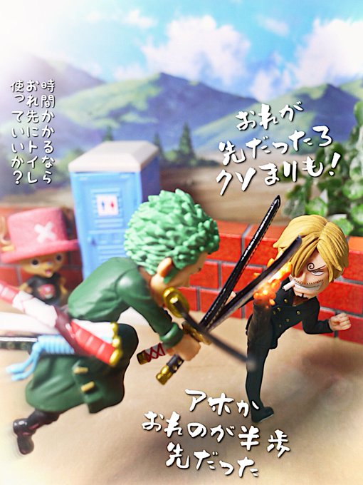 #夜のフィギュア撮影会 1/19 お題 『争い』 争いの原因 → トイレの順番 #onepiece #roronoazoro #sanji #tonytonychopper #ゾロ #サンジ #チョッパー #WCF