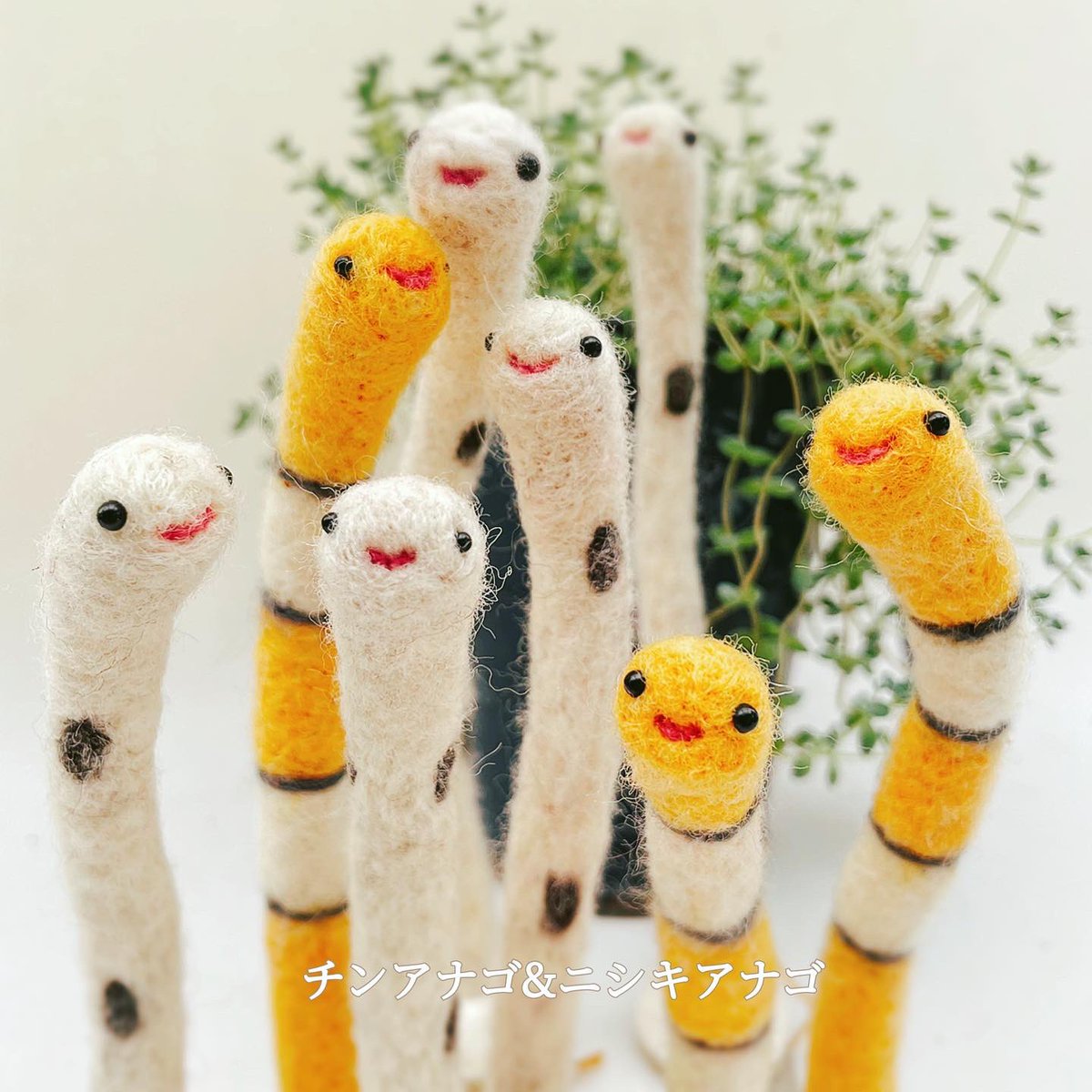 おはようございます!(^^) 「一緒にいたい雑貨」 をコンセプトにものづくりしてます。 🏠website uozanofutari.com 💐shop(minne) minne.com/@uozanofutari 夏きたって感じですね🌻 無理なく頑張りまっする! よろしくです〜🙋♀️♡ #チンアナゴ #minne #羊毛フェルト #ブローチ