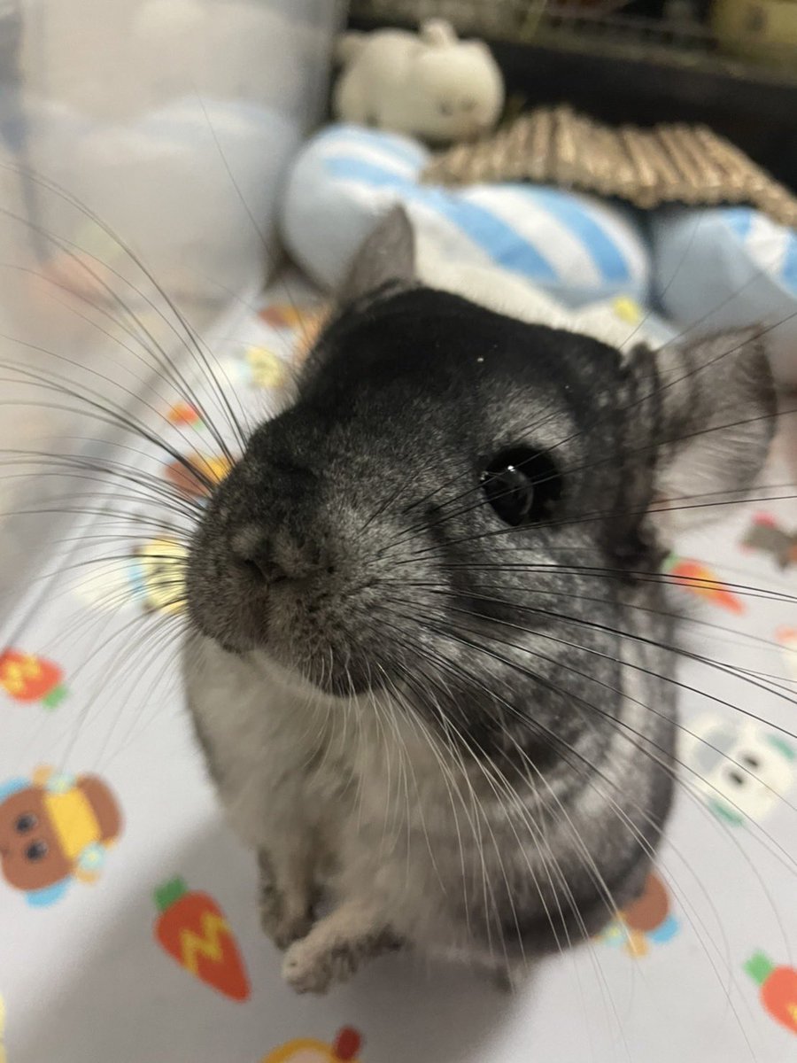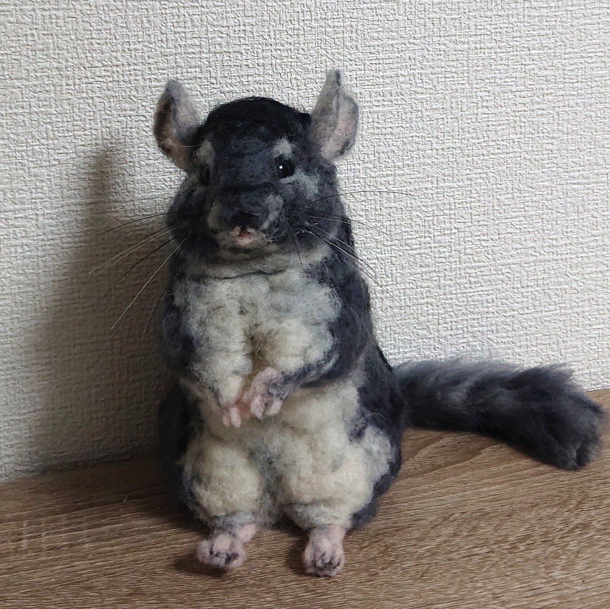あざと可愛い黒豆ちゃん完成❤️ 写真1枚から作って スムーズに1発OK💖😆 今回からお髭用テグス長いの入手できて リアルに見えるように色も塗ってます❣️ 進化✨いい感じ✨ #チンチラ #うちの子ぬいぐるみ #羊毛フェルト