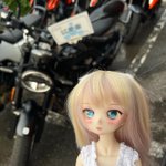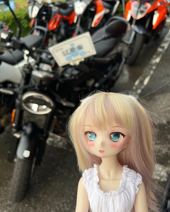 ドールズパーティーの後に、お友達とバイクを並べて撮影しました😊🏍✨ みんなでツーリングに来たみたいで、鈴音はノリノリでした😉💕 #もこもかっこ #THユカリnail #MDDはいいぞ #ドールズパーティー #ドルパ #バイク #ツーリング