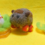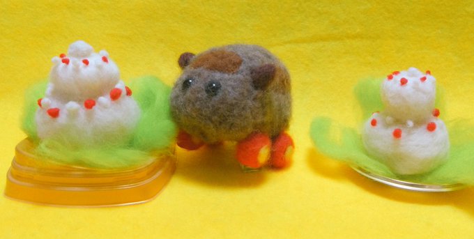 🐹モルカー×ミニチュア🎂 テディお誕生日おめでとう🎉🎊 特大バースデーケーキステージの上で ケーキをぱくぱく🍰 ペーター、ひーふーみーも パーティハットをかぶってお祝い🥳 「まだまだ食べ物のプレゼント受付中だプイ〜😋🍕🍨」 #モルカー #モルカーファンアート #テディ誕生日 #PUIPUIBIRTHDAY