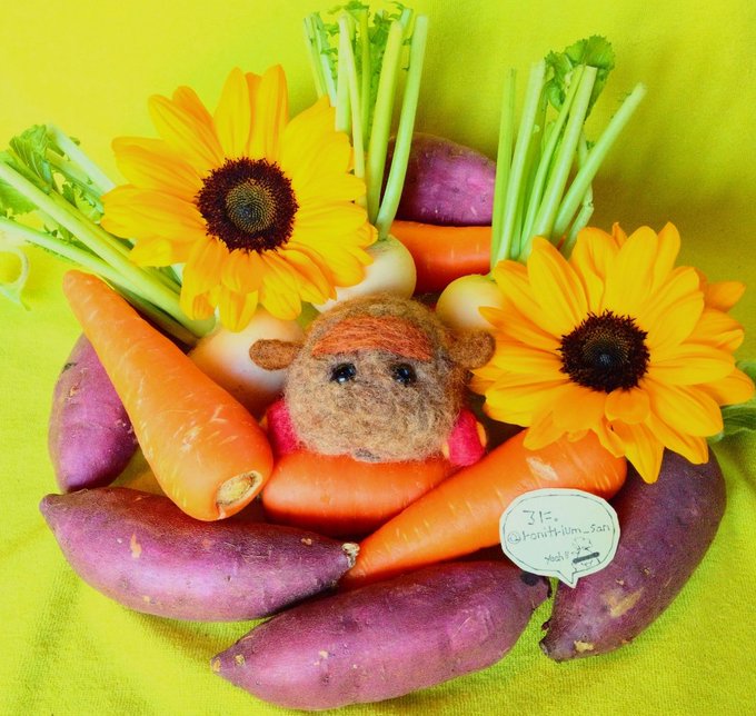 テディちゃんお誕生日おめでとう!!!! お転婆で元気一杯なあなたが大好きです。お腹壊すのだけは気をつけて、これからも美味しい物一杯食べてね~!!!!🥕🥕🥕 #PUIPUIBIRTHDAY #モルカーファンアート #テディ誕生日
