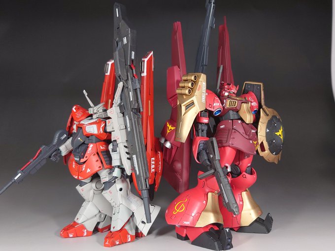 このツーショットがやりたかったんデス。異なる作品でアムロ、シャアがそれぞれの #ディジェ に搭乗。 この2機を製作されたモデラーさんはそんなにいないんじゃないかなぁ〜 @miyuto2146 さんは私の中では別格ですが(;^ω^) #作品をみてくださいあわよくばフォローしてください祭 #ガンプラ