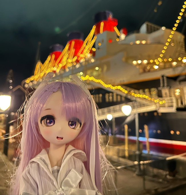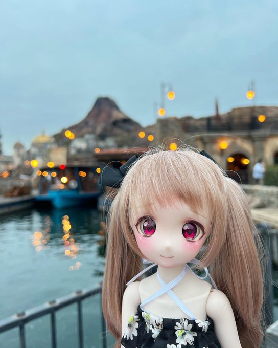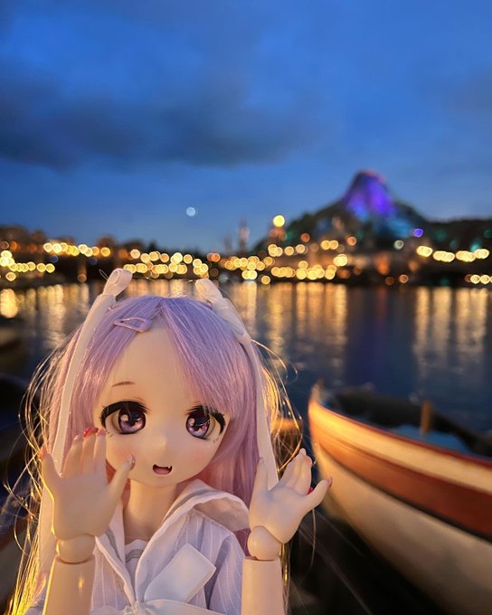 夕暮れ時、海辺でくつろぐ娘たち。彼女達は灯りが灯り始めた海辺の街を眺めながら、1日遊んだ思い出を語り合っています☺️💕 #もこもかっこ #THユカリnail #MDDはいいぞ #ドル沼CH #p_house #ぷちりぼん #missantroop #ディズニー #ディズニーシー #disney #disneysea #夜景 #イルミネーション