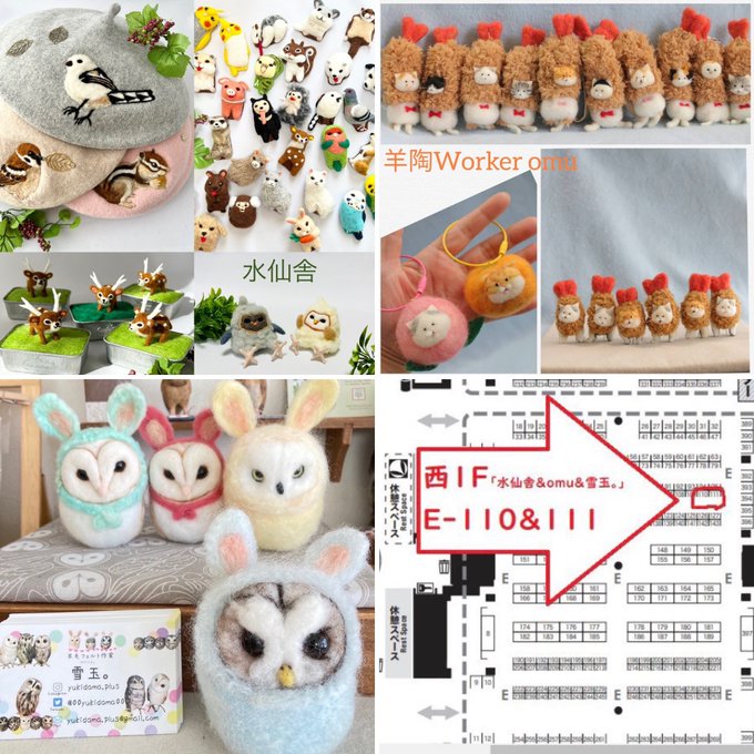🌈デザインフェスタ57に出展します🌈 ☀️5/20(土)のみ ☀️西館1階 Eー110・111 ☀️水仙舎&omu&雪玉。 羊毛作家3人の並び出展 🍀水仙舎は羊毛フェルトで動物モチーフのブローチ・置物・ベレー帽など出品します ⚠️土曜のみです @designfesta #デザフェス57 #デザインフェスタ57 #リツイート祭り