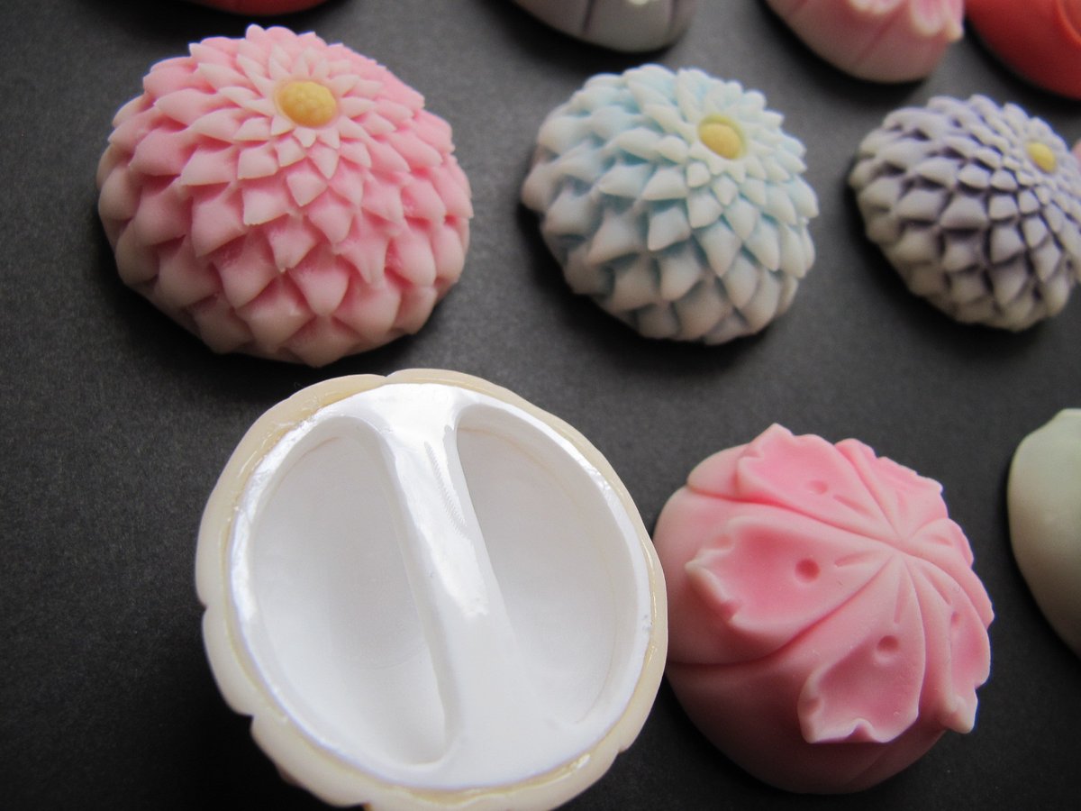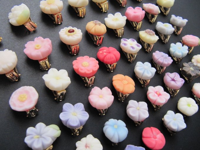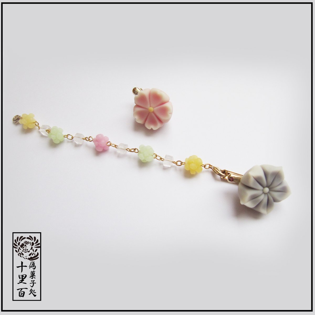 #デザフェス57お品書き 帯留めと羽織紐 帯留めは三分紐用のパーツを使用した物がメインですが丸紐を通せるオリジナルパーツを使用した大き目の帯留めもございます 妖怪和菓子はお化け縁日でめっちゃ売れてしまったため鬼、アマビエ、九尾の狐、かまいたち、猫又、小玉鼠が少々、猫も3匹のみとなります