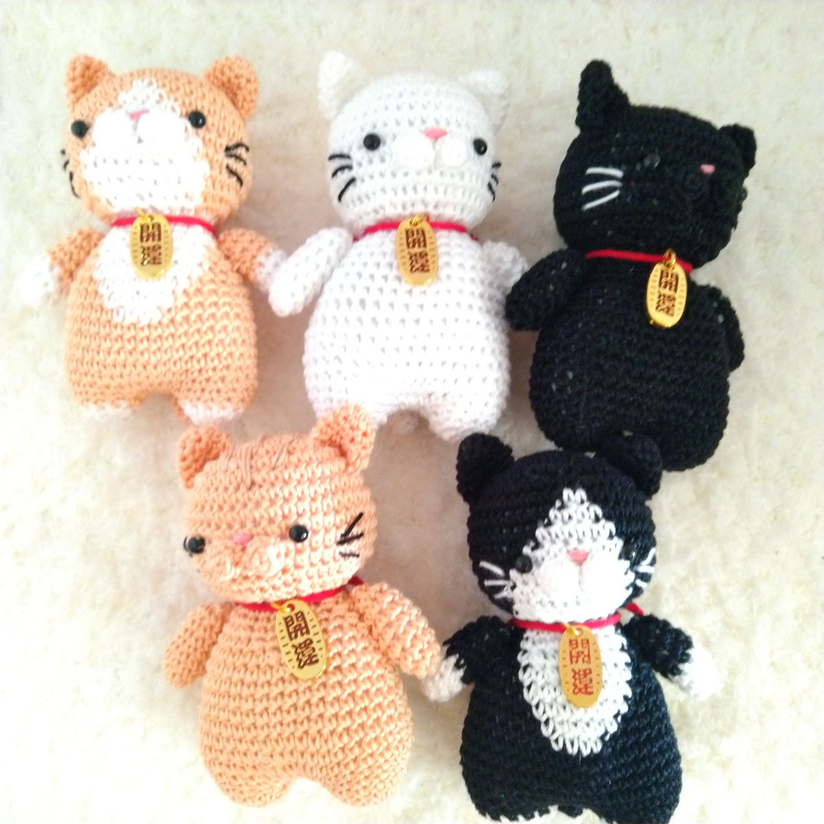 #デザフェス57 のお品書き。 福猫、王様シリーズ、タコとイカのあみぐるみ🐙 小判を下げたふくふくした体の福猫は縁起が良さそう✨ 王様たちはマントのおかげで自立します。笑 タコとイカも実物かなり可愛いですよ❤️ #あみぐるみ #デザフェス57お品書き #編み物 #手芸 #デザフェスお品書き