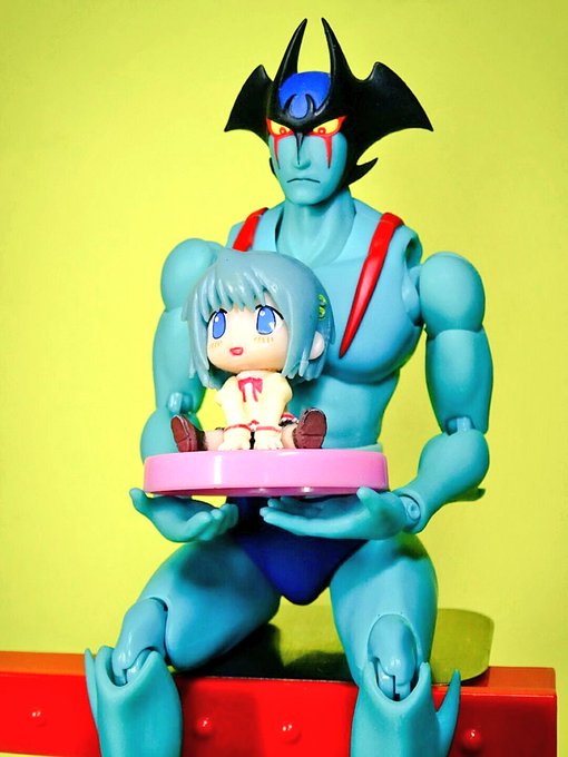 #夜のフィギュア撮影会 【1/12スケール】我が家はスケールに関係なく青色の子はみんなお友達だよ! 🦇ヽ(^o^)丿イエーイ!💕🌊👍️✨ #オモ写 #セガさや #まどマギ #マギレコ #SHフィギュアーツ #デビルマン 過去 😆めでたしめでたし!