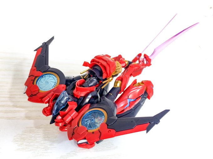 境界戦機の新型機ケンブァーシュTypeZERO、出来ました。ビークルモードに完全変形しますよ( ・`ω・´)b ビークルのウイングはボードにもなりますよ。 #境界戦機/#メイレスケンブ/#トランスフォーマー/#変形/#プラモデル/#いいねした全員フォローする/#リツイートした人全員フォロー/#エウレカセブン