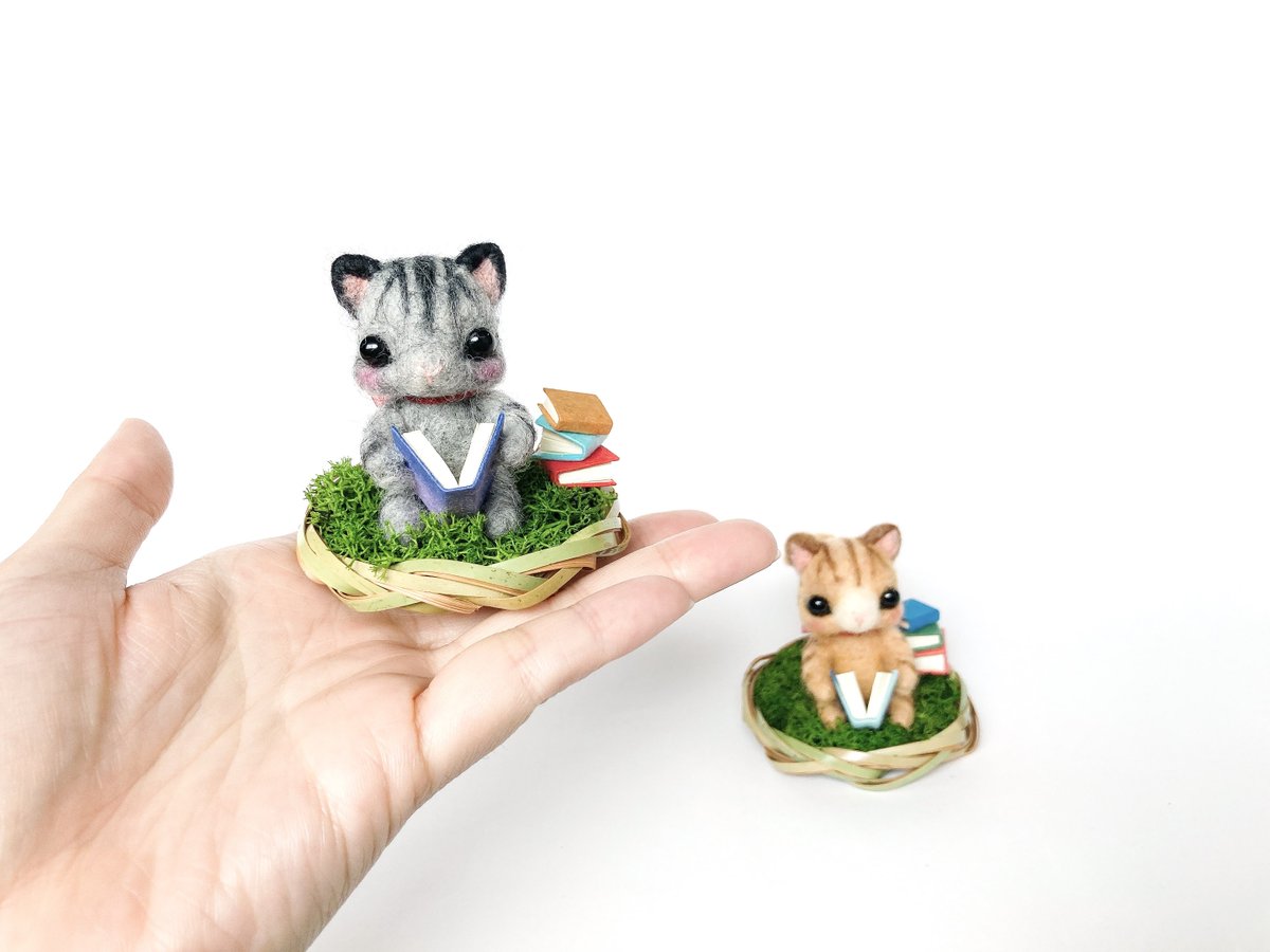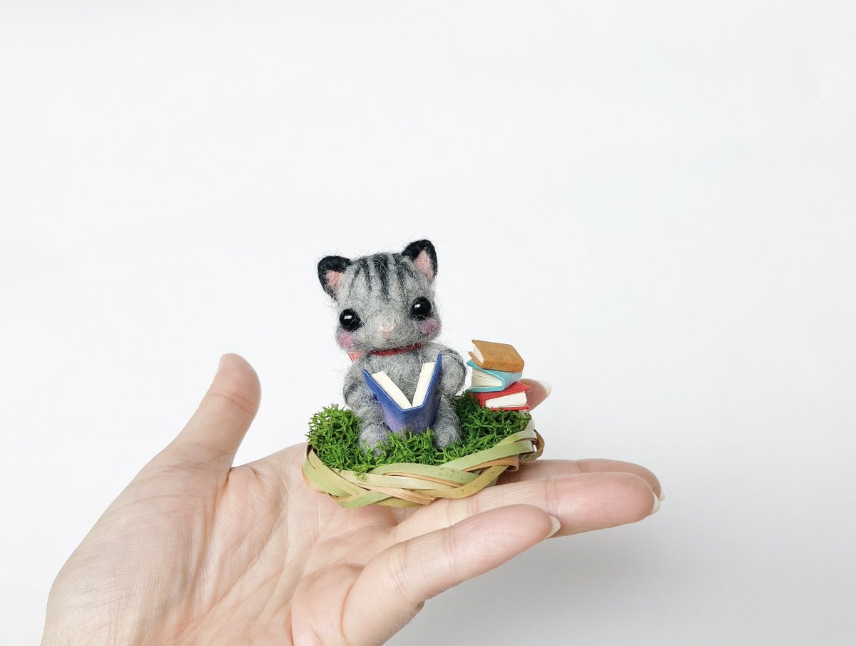 陽だまり本好きトラ猫さんは 茶トラとグレートラ猫さんがいます。 グレーもcreemaさんでご購入可能ですので お気軽にお問い合わせください。 #羊毛フェルト #Creema creema.jp/item/13729646/… @Creema_jp #needlefelt #猫 #茶トラ #トラ猫