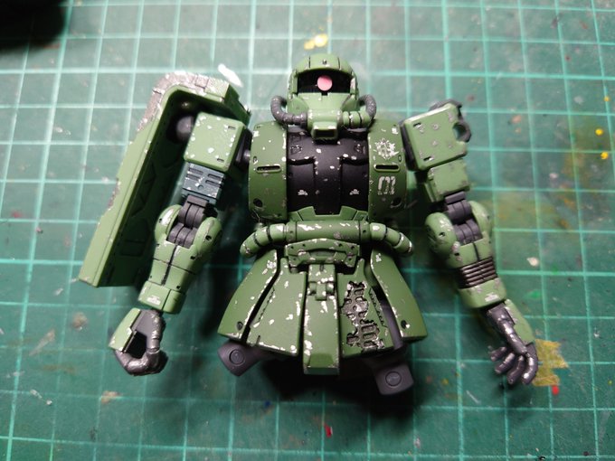 #ガンプラの画像貼るとRTされると聞いて #ガンプラ好きな人と繋がりたい #ガンプラ #プラモデル好きと繋がりたい #ドアンザク #ドアン専用ザク 今日のサブ垢報告! 塗装とスミ入れを同時進行 しながらなんとか下半身が 出来ました。 twitter.com/Nemesia0412/st…