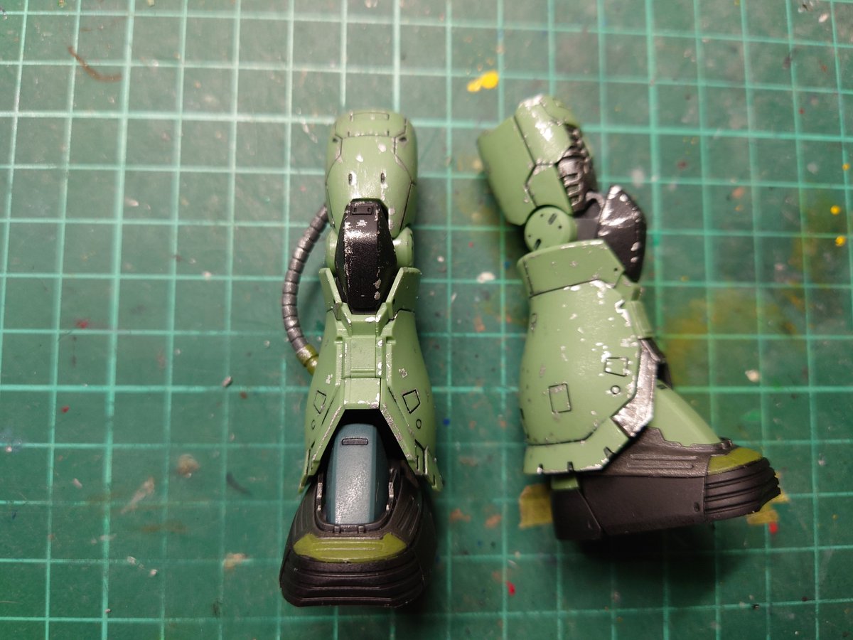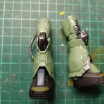 HGドアンザク 5日ほど放置状態だったが(コロナ疑惑の体調不良 あ、陰性でした)、今日のウェザリングは脚に突入 脚先は、明日以降でw #ガンプラの画像貼るとRTされると聞いて #ガンプラ好きな人と繋がりたい #ドアンザク