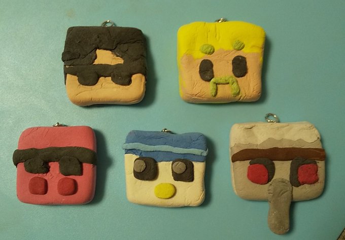 粘土でドズル社🎨 三女ちゃん作。 製作時間、約4時間。 頭に丸カンつけたので、乾いて固まったらどこかに吊して飾ろうかな🎵 #ドズル社 #ドズル社アート #ドズってる #ぼんさん何してんすか #はよ見ろやあ #見るかもわからん #誰でも見れますねぇ