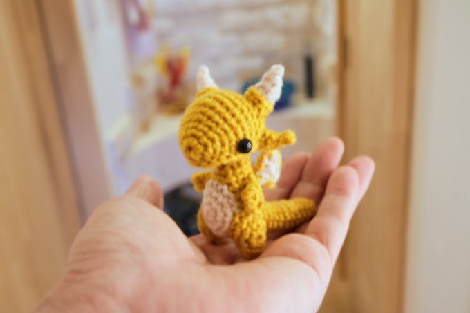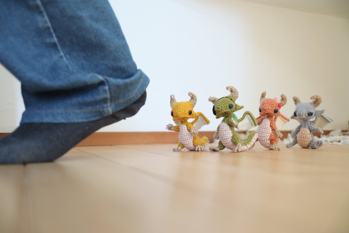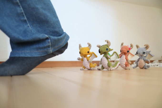 で、出来たーーーーーーー〜〜!!!! オリジナル作品、赤いドラゴンの #あみぐるみ です!! 苦節半年、晴れて🦄幻獣🐉デビューできました😊 今後はドラゴン作家目指します‼️ #あみぐるフィギュア #ドラゴン
