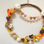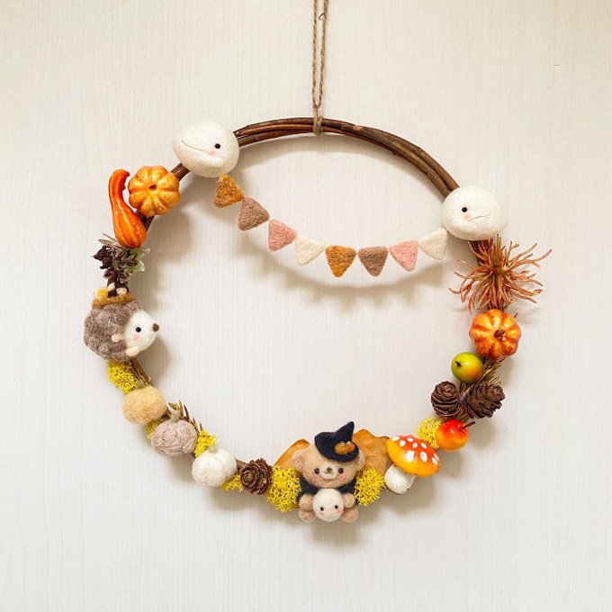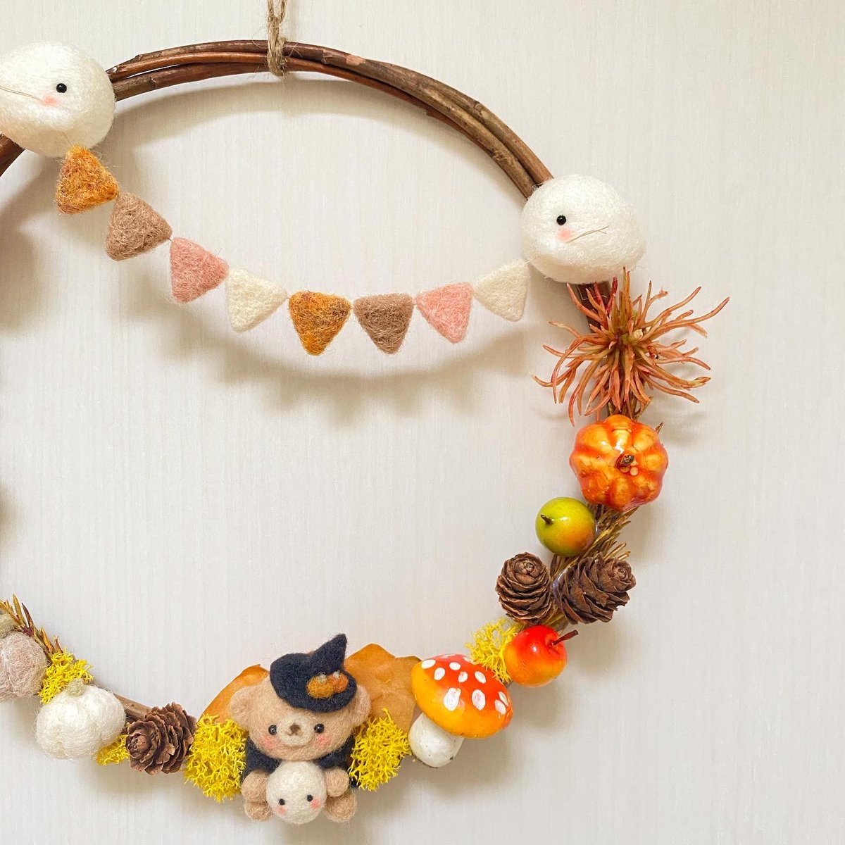 新作⭐︎くまちゃん🧸ハロウィンリース🎃🎃🎃 今年のハロウィン作品はこれでおしまいです👻 minne.com/@nonochami #minne_new #minne #羊毛フェルト #ハンドメイド #ハロウィン #くま #ナチュラル