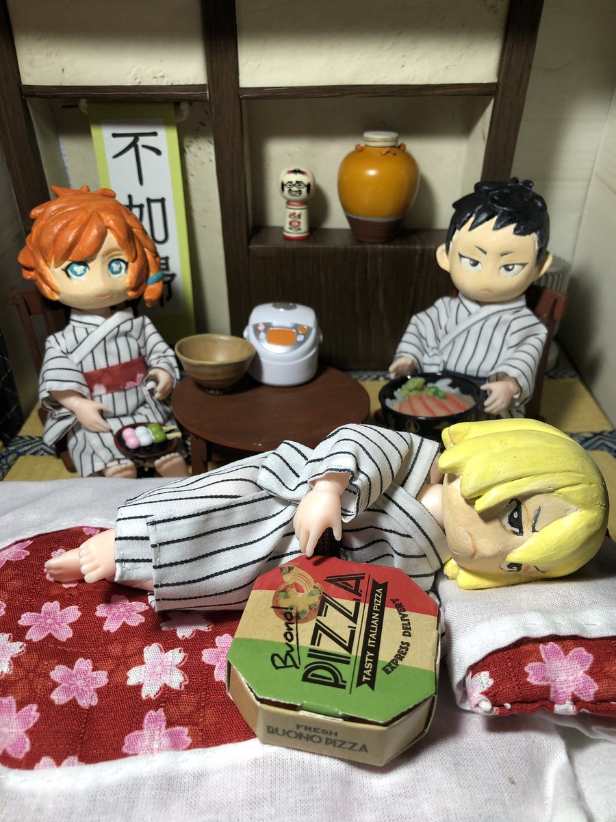 おちおち食事もできないフジキドのフィギュアが完成しました! 素材はエポキシパテ、スケールは大体1/20で全高95mmくらいです。 スシソバはブラックライトでスシが発光します。 ズルズルーッ! #ニンジャスレイヤー #ウキヨエ