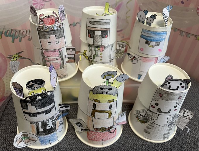 最終日だよ!全員集合! オープン待ち中の娘との首振り工作シリーズ完了🎉 ランド最終日だけど、寂しがるのは終わってからにすると決めた!1日全力で楽しむんだっ(๑•̀ㅂ•́)و✧ #ドズル社ランド #ドズってる #ぼんさん何してんすか #はよ見ろやあ #見るかもわからん #誰でも見れますねぇ #ネコおじ