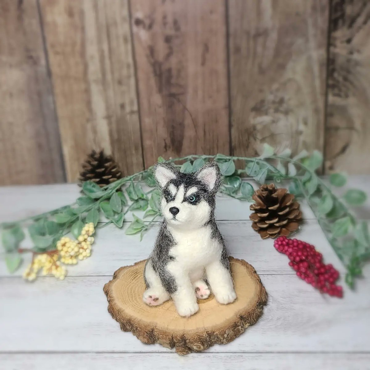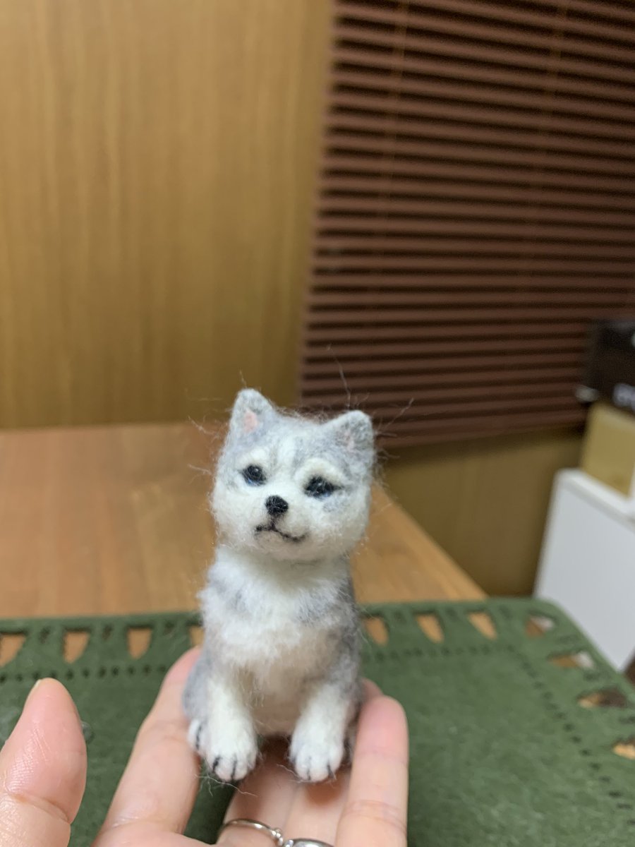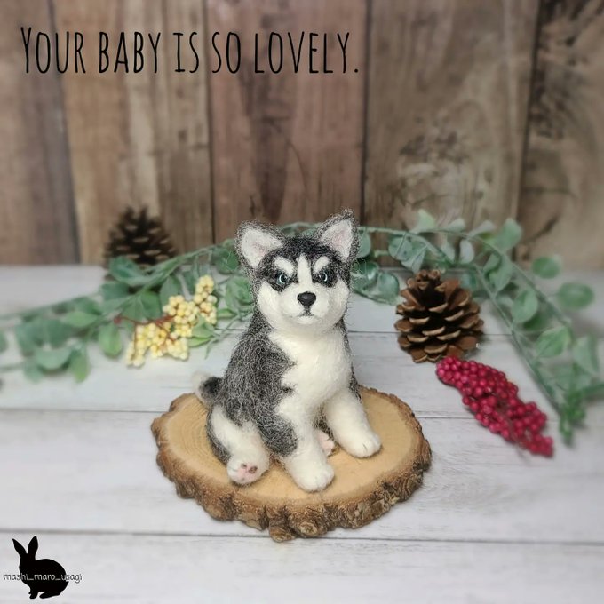 お座りハスキー🐶🍼 ヤフオクに出品中です。プロフからお入りください。 #ハンドメイド #羊毛フェルト #シベリアンハスキー #ハスキー #needlefelting #みんなで楽しむTwitter展覧会 #犬好きさんと繋がりたい