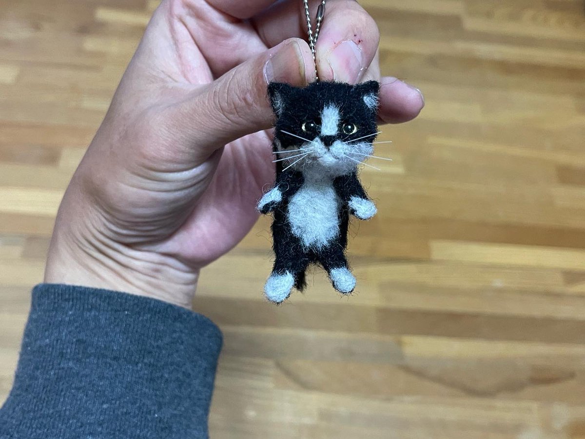 トロンボーンを吹く猫のクリスマスリース🎄メルカリからのご注文です。過去作品③を見てトロンボーン版でリクエスト頂きました❗ありがとうございました💕 #羊毛フェルト #ハチワレ猫 #クリスマスリース #woolfelt #christmaswreaths instagram.com/p/CfngJ12Jx_8/…