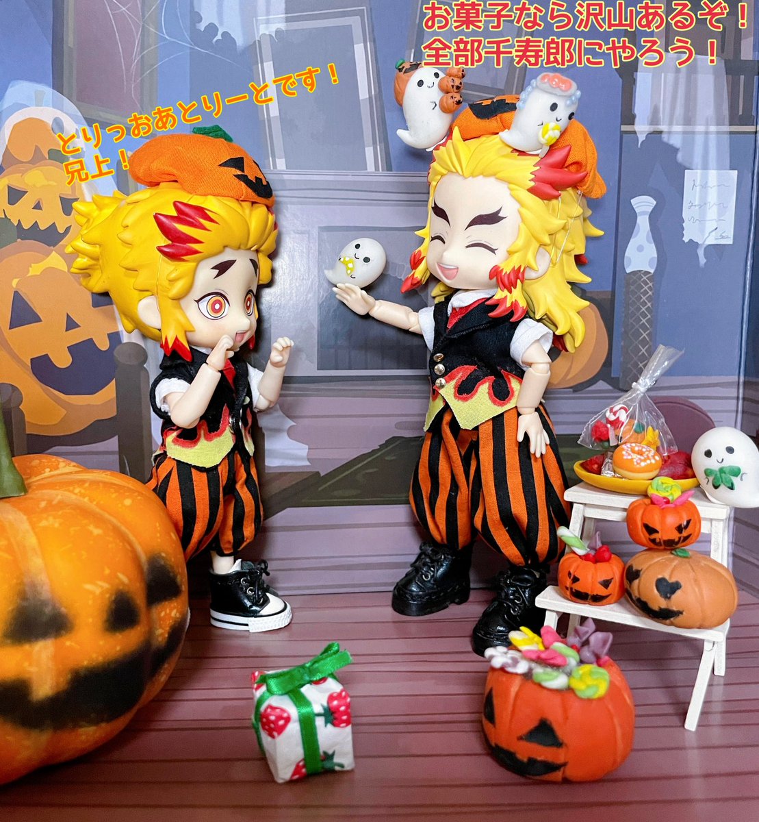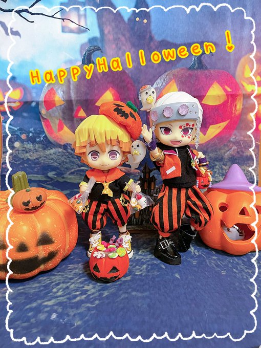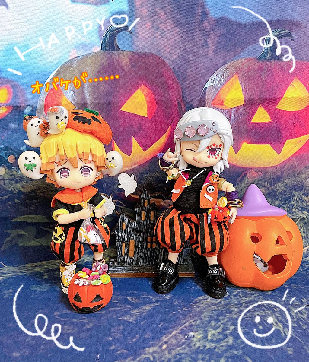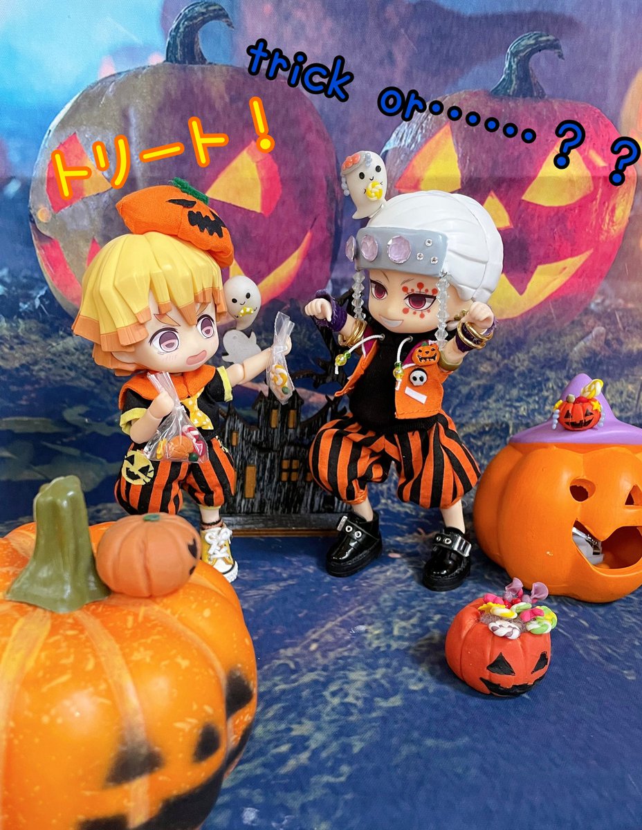 🎃🍬🎃HappyHalloween!🎃🍬🎃 トリックオアトリート✨✨ ハロウィン衣装つくったー😍 宇髄さんは髪下ろしverも撮ってみた✨✨コラボでも髪下ろし増えろ〜🙏😍 #ハロウィン2021 #ハロウィンドール撮影2021 #kmtハロウィンパーティー