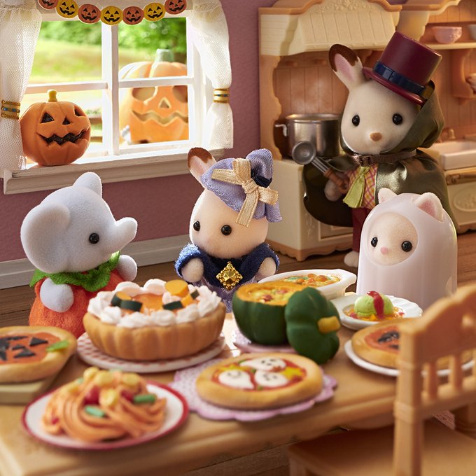 「おいしそう~!」 「いっぱい作ったから好きなもの食べていいよ~」 ショコラウサギのフレイジャーは #ハロウィン のために、いろんな料理を作ったみたい🍳 赤ちゃんたちはどれから食べるか相談中♪ おや?窓の外にいるのはだれかな…? #シルバニアファミリー #シルバニア #シルバニア赤ちゃん