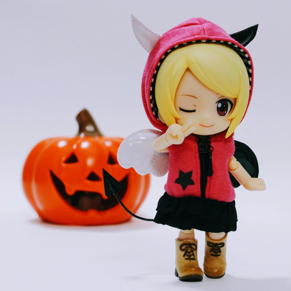 10/31(日)シェリーちゃんの「ハロウィン🎃」コーディネート 「るしふぁーパーカー」にブーツ、そしてシャミ子の様な「しっぽ」がポイントです(*^^*) #halloween #halloween2021 #ハロウィン #ハロウィン2021 #キューポッシュ