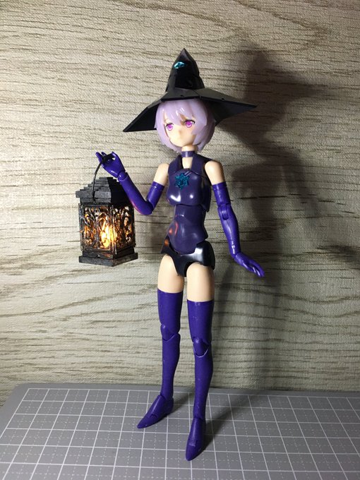 #ハロウィン だと?! まだだ!まだ終わらんよ! 終わるまでは何度もあげると言ったよね! #メガミデバイス ウィッチ・ダークネスさん と自作のランタンだッ! LEDで光る! #ハロウィン2021