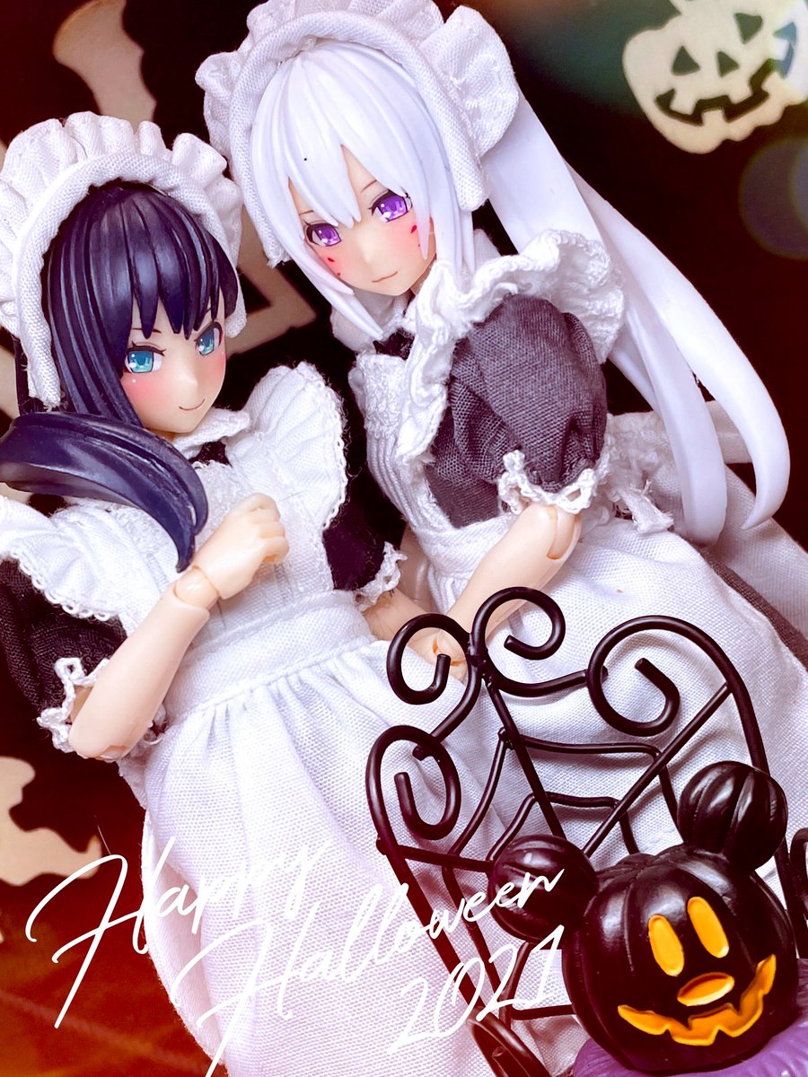 Happy Halloween🎃👻🎃🐈⬛ 🎃 今年はうちのこ月並みだけどやったことなかったメイド服でお届けします💜🖤 ベタなヒメルといっさいお給仕するつもりのないユリカ笑 みなさま素敵なハロウィンをお過ごしください🎃🎃🎃 #ハロウィン2021 #メガミデバイス
