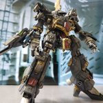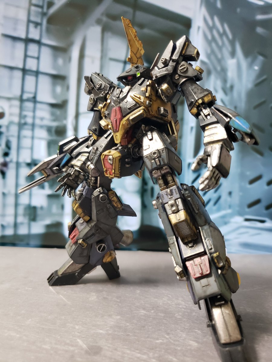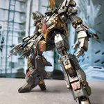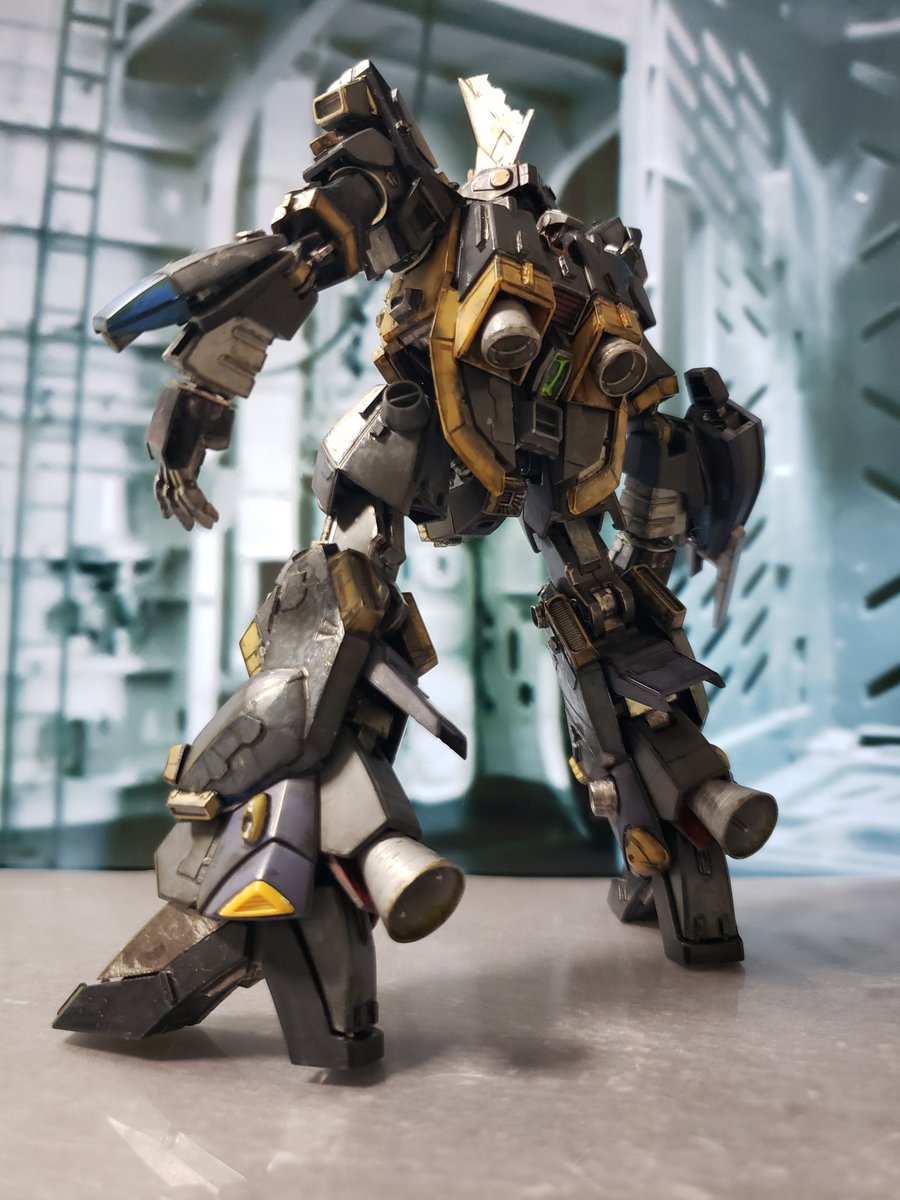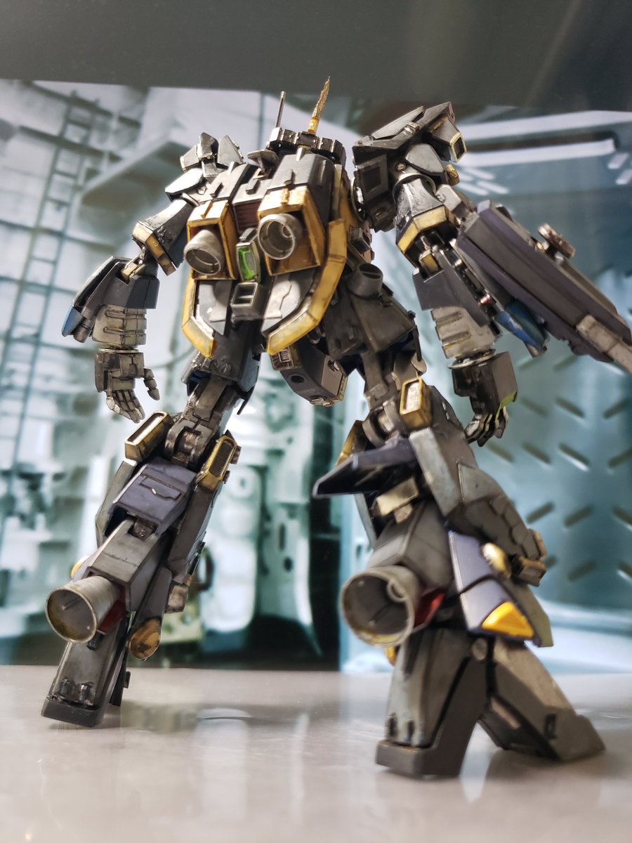 今日の過去写真ー! 今回のテーマは『アップと引きと』だよ! つい、全体を撮りたくなってしまうのだけれど、効果的なアップも勉強していきたい。 こんな線なんだ、とか、改めての顔のズームとか、新しい発見も。 #ガンプラ #バーザム #ゴールドフレーム #ストライクガンダム #貴様達に名のる名はない