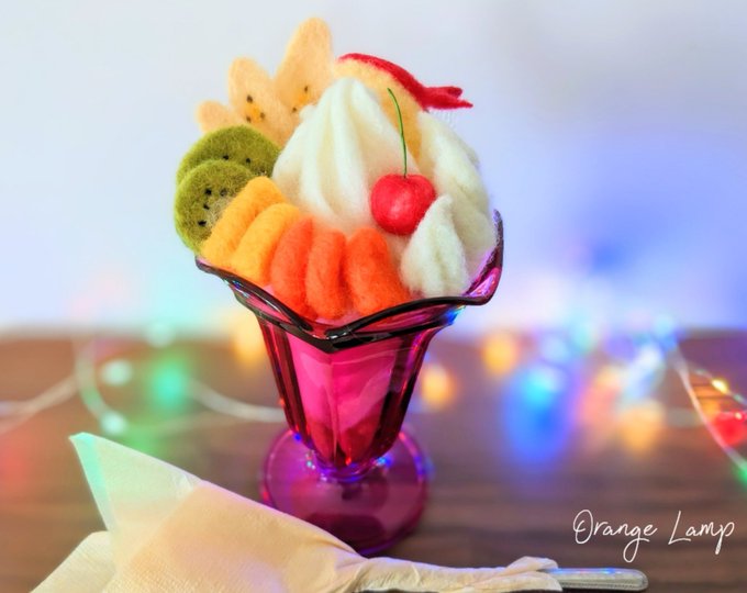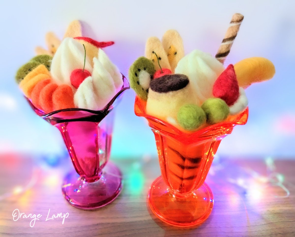 🍓🍨🍓🍨🍓 今日は「パフェの日」 シマリスちゃんの大好物? パフェは昔樹脂粘土で作った物です。 あ〜食べたくなってきちゃった(^▽^;) #パフェの日 #羊毛フェルト #羊毛フェルトシマリス #シマリス #chipmunk #パフェ #woolfelt #norino #needlefeltinganimals #needlefelting #羊毛毡 #양모펠트