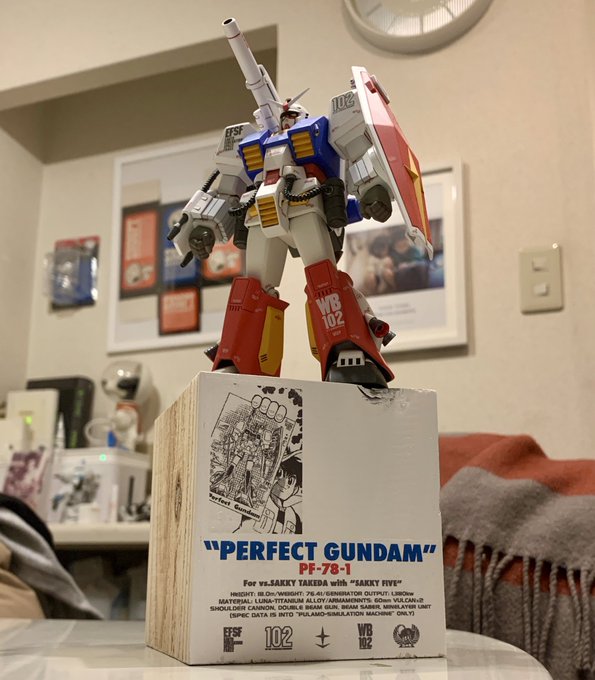 #あまりに格好良かったのでマネしました MSV旧キットのパーフェクトガンダムのボックスアート!ハードなウェザリングがあまりにも格好良いんです😆 赤いパンツも格好良過ぎてマネしちゃいましたw #パーフェクトガンダム #旧キット