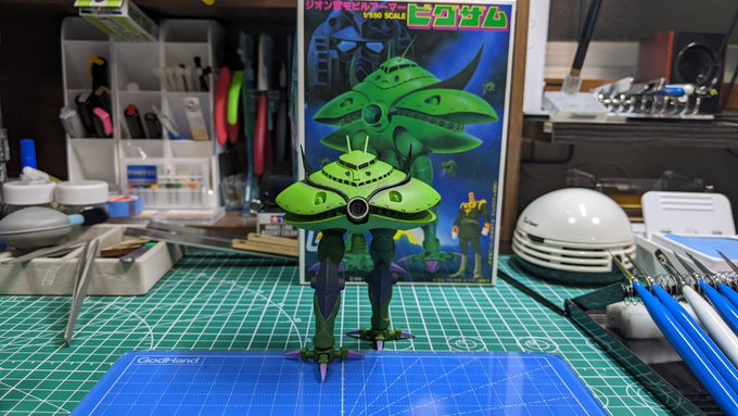 #ビグザム 降臨!アマガエル感半端ない🤣🤣🤣 反省点…色をカエルに寄せすぎた… モノアイつけようか迷い中 #ガンプラ #ガンプラ再販 #ガンプラの画像貼るとRTされると聞いて #ガンプラ好きな人と繋がりたい #旧キット