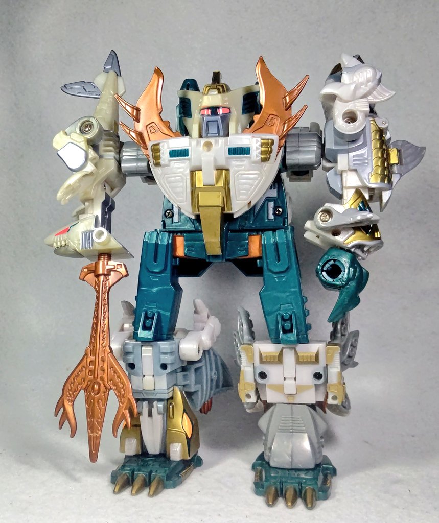 ゴッドネプチューン!めちゃくちゃ良い…意外とがっちりしててさわり心地がいいですねぇ、ただシーファントムの腕と合体時の拳が片方ないのが残念だ…でも色もキレイだしボリュームがあって思ったより満足度が高い😆 #トランスフォーマー #ビーストウォーズ