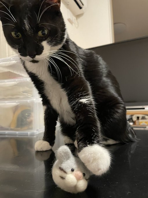 フェリシモさんの羊毛フェルト1個目ようやく完成(ฅ’ㅅ’ฅ) 初めての羊毛フェルトでした…何度指を刺したか(´ฅωฅ`)‧º·˚. あの針超痛い…刺すのもれなく指先だし 2個目は三毛猫さんなのですがお目目パーツが一個行方不明…どうしよう💧 #f_couturier #フェリシモ #羊毛フェルト