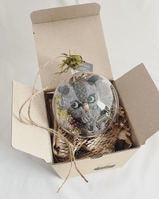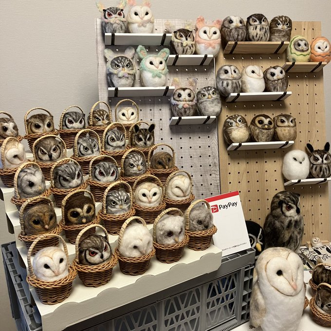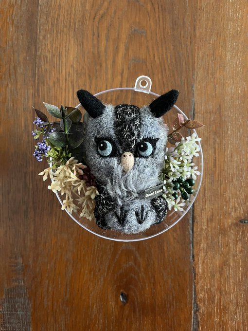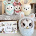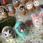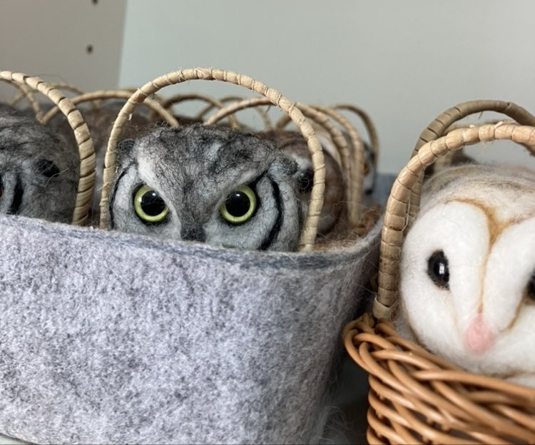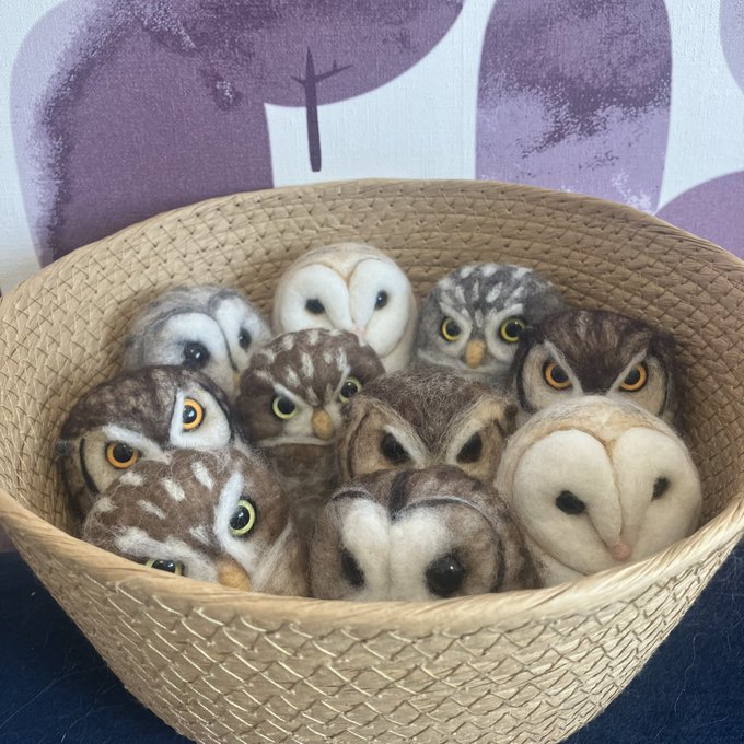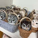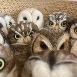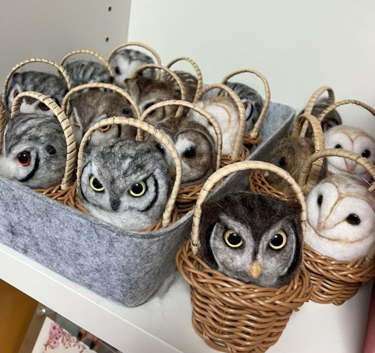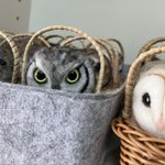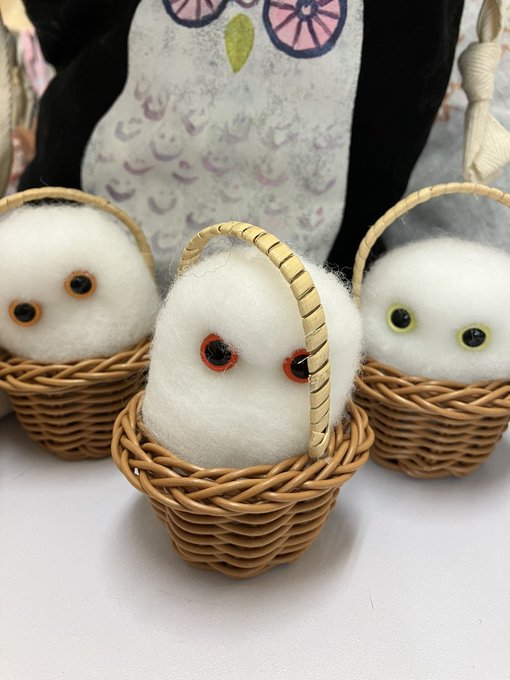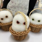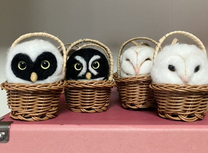 新幹線でちくちくするのって 最初に荷物から出す勇気が必要なんだけど、一旦出してしまえばあとはちくちくするのみ(笑)カゴ入りブラックメンフクロウの完成♡ @hohozakka さんに持ってくよ〜 #羊毛フェルト #フクロウ #おでかけふくろう #owl #needlefelting twitter.com/00yukidama00…