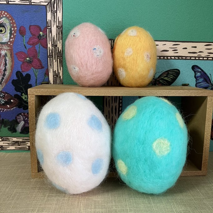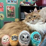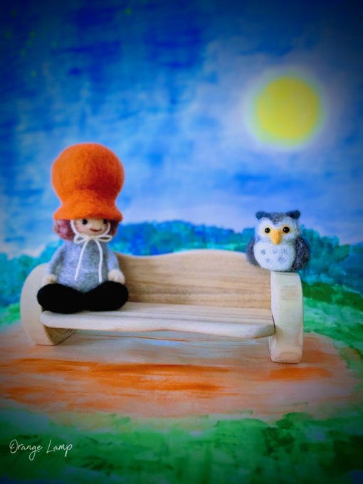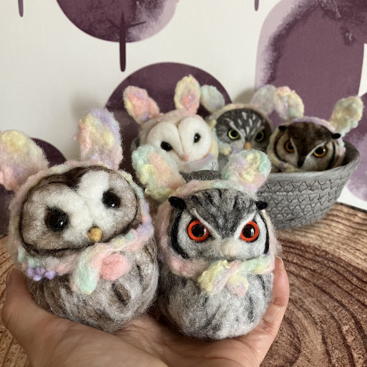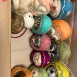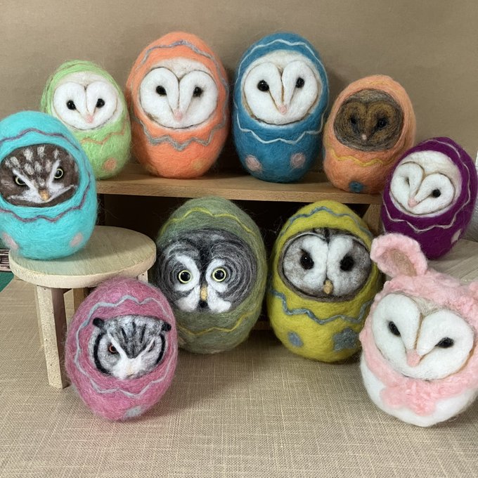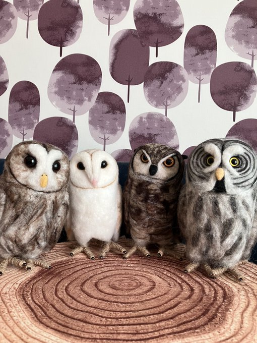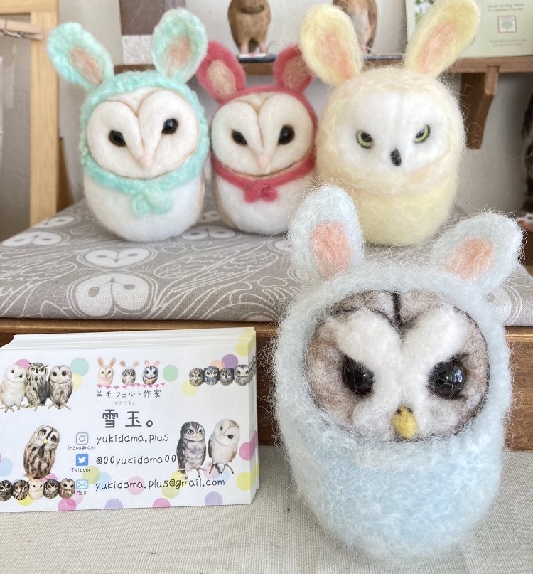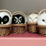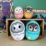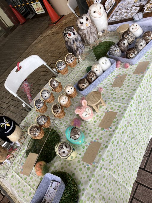新幹線でちくちくするのって 最初に荷物から出す勇気が必要なんだけど、一旦出してしまえばあとはちくちくするのみ(笑)カゴ入りブラックメンフクロウの完成♡ @hohozakka さんに持ってくよ〜 #羊毛フェルト #フクロウ #おでかけふくろう #owl #needlefelting twitter.com/00yukidama00…