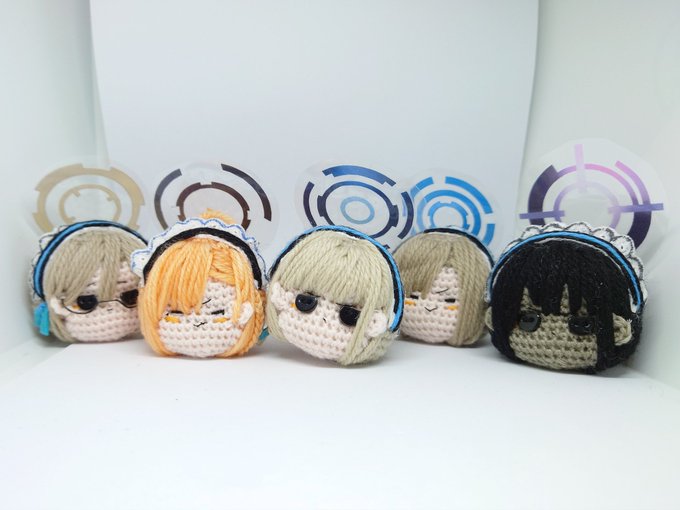 ブルアカから、C&C(ネル、アカネ、アスナ、カリン、トキ)と、放課後スイーツ部(アイリ、ヨシミ、カズサ、ナツ(既出))と、アリウススクワッド(サオリ、アツコ、ヒヨリ、ミサキ)を編みました。(個別の写真はリプ欄に続きます。) #ブルアカ #ブルアカ2周年アート