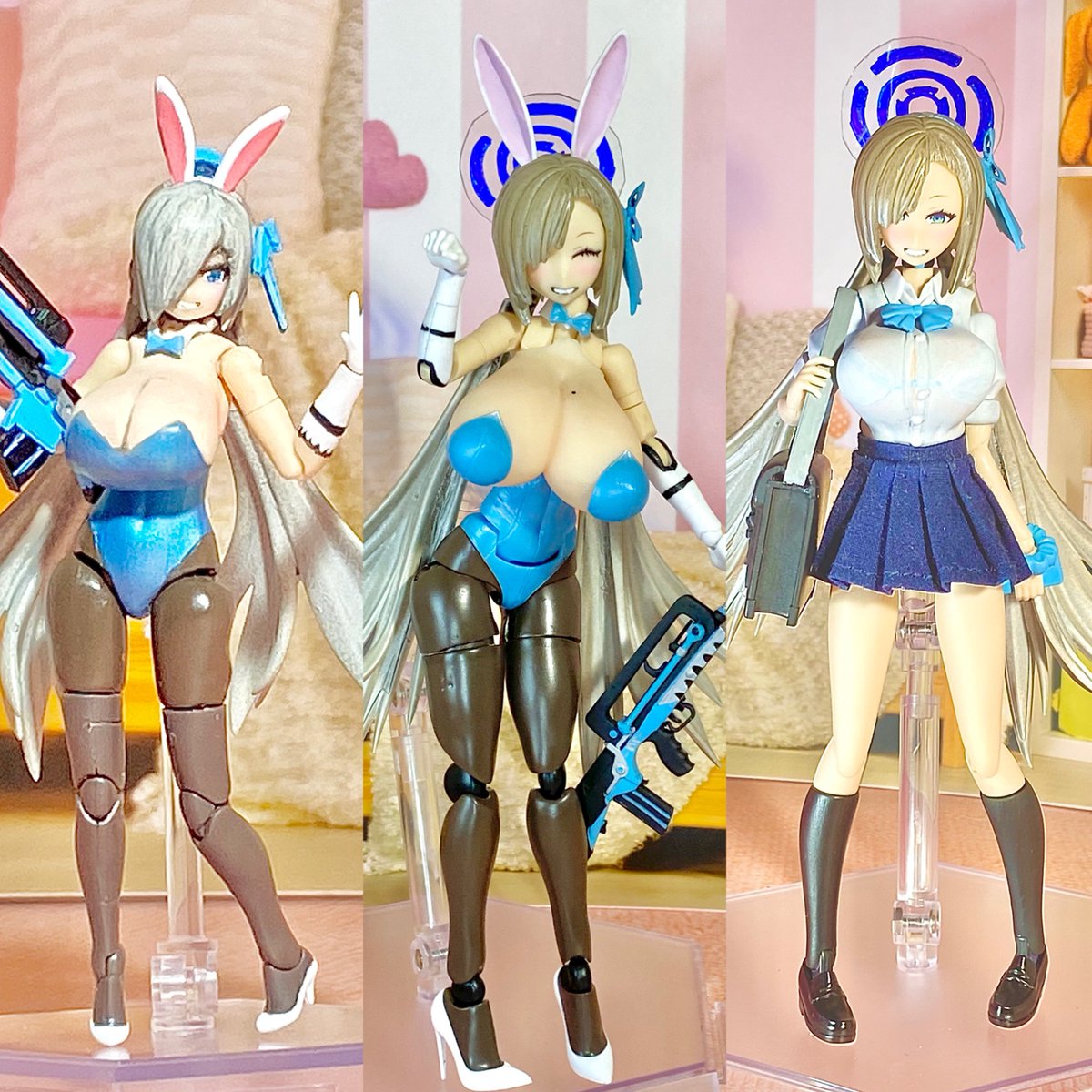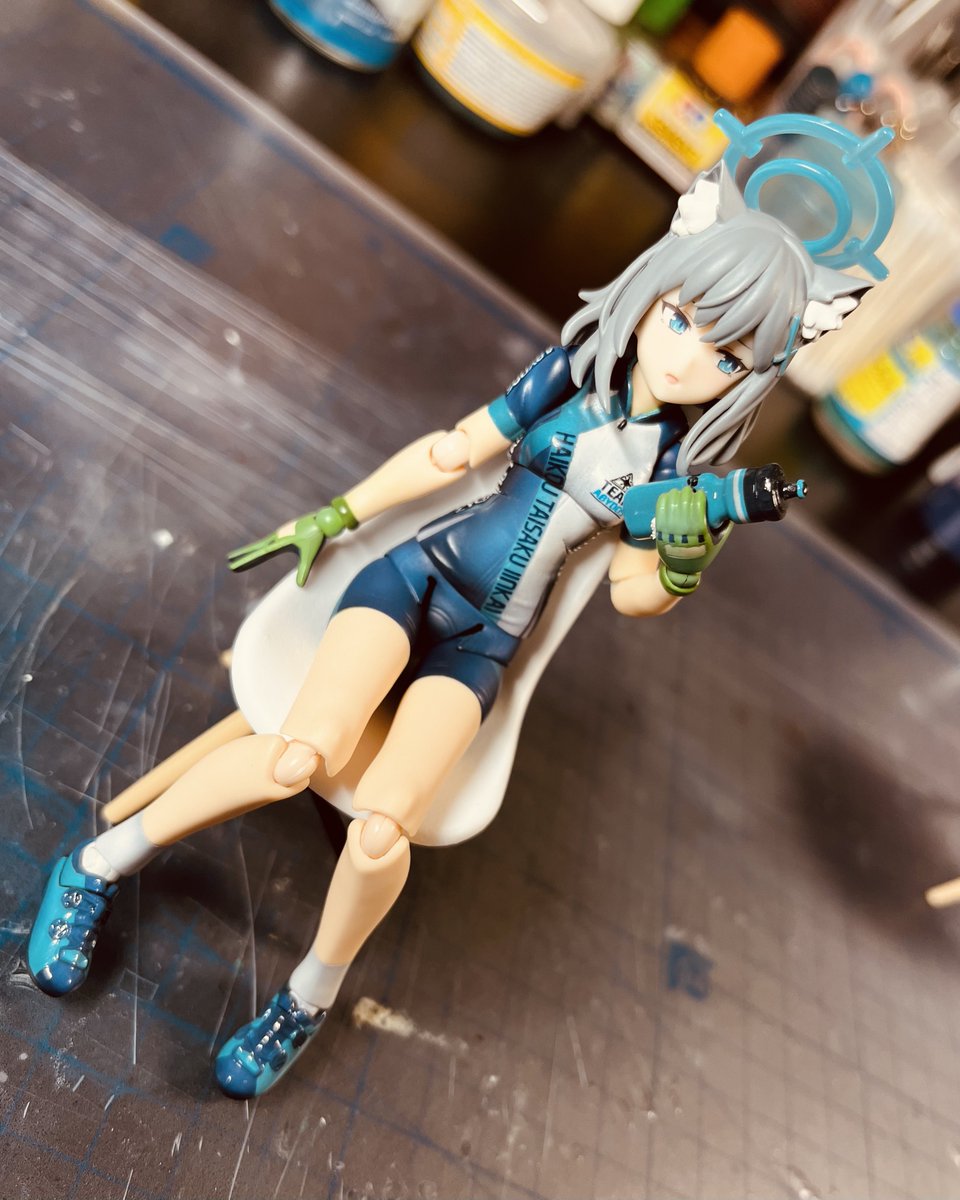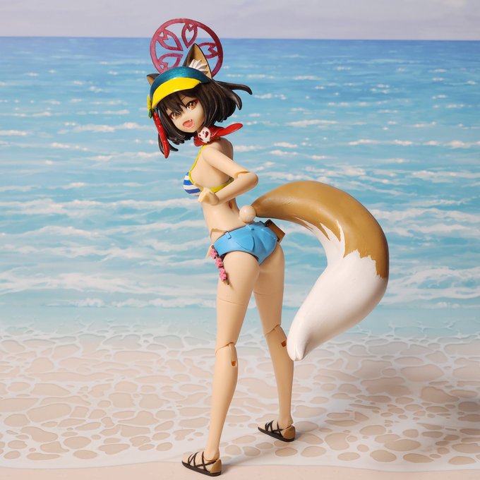 水着イズナ、ギリギリ間に合いましたー。 本当ならイラストで持ってたラムネ瓶も用意したかったですが、このサイズのラムネ瓶が無かったので持ち物無しです。 いずれ制服バージョンも作るのでサンバイザーは取り外し可能にしてます。 #ブルアカ #ブルアカ2周年アート