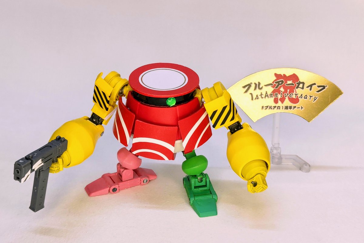 間に合ったー!ブルアカ1周年おめでとうございます! 記念にKAITEN FX MK.1を作りました。 MK.1くん可愛いからまた出番が欲しいですね、量産型顔だしバリエーションも増やし放題! #ブルアカ1周年アート