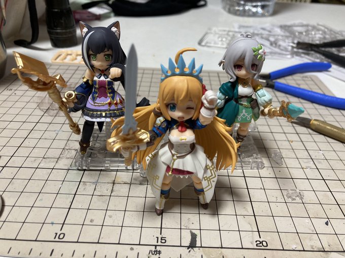 わが家にも!美食殿がやってきた!! (あれ?1人足りない?) はい・・・三人とも可愛い優勝です。 そして虫とか食わせたくなる三人です。 あ、ちょっとだけ塗り足しました(胸の谷間とか) #デスクトップアーミー #プリンセスコネクト #プリコネR #ペコリーヌ #コッコロ #キャル